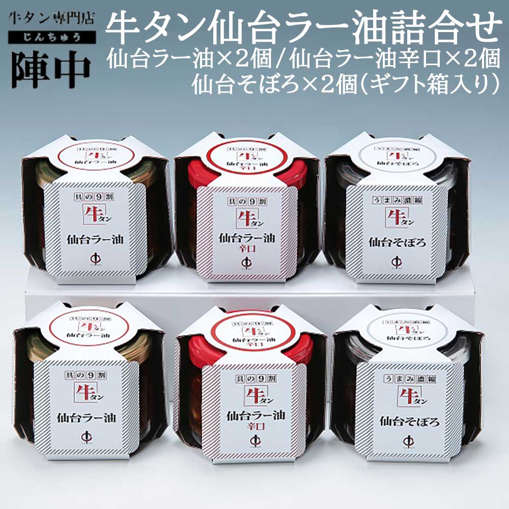 【陣中】牛タン仙台ラー油詰合せ(JB-20BP) 仙台ラー油×2 仙台ラー油辛口×2 仙台そぼろ×2 ギフト箱入り【送料無料】