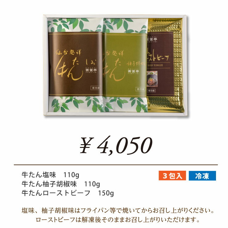 牛たん詰合せ ASYB-3【牛タン 塩味、柚子胡椒味、ローストビーフの詰合せ】