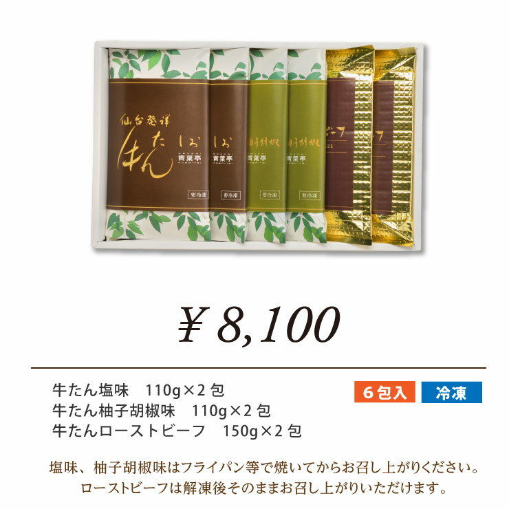 牛たん詰合せ ASYB-6【牛タン 塩味、柚子胡椒味、ローストビーフ各2包詰合せ】