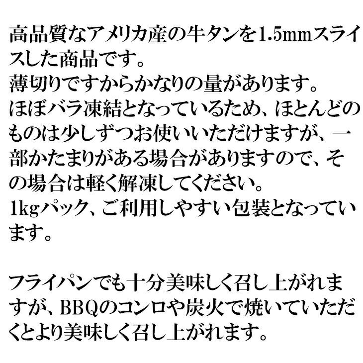 名称(内容量) 牛タンスライス 1.5mm 700g 賞味期限 商品に記載 製造日より365日 保存方法 冷凍保存してください 原材料 牛タン(米国産) 最終加工地 国内 販売者 株式会社えつすい 福井県敦賀市砂流43-6-3(配送センター) 株式会社えつすいです。