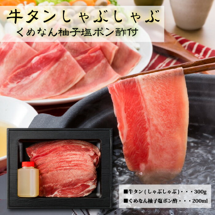 牛タンしゃぶしゃぶ 300g 通常は輪切りにされることが多い牛たんですが、風味と食感が楽しめるタン先から、やわらかく適度な脂乗りと旨味の感じられるタン元まで、1枚の牛タンスライスで味わえるように縦にスライスしました! くめなん柚子塩ポン酢 200ml 牛タンの旨味を更に引き立てる、岡山県産くめなん柚子の果汁を使用した自信の「塩ぽん酢」をセットにしました。
