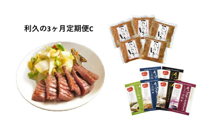 【ふるさと納税】【利久の3回定期便C】(1)牛たん2個・南蛮味噌詰合せ(ギフト)(2)牛たんハンバーグ詰合せ(3)牛たんスモークスライス詰合せ 【定期便・牛タン・お肉・ハンバーグ・肉の加工品・南蛮味噌】 地元・仙台だけにとどまらず、全国に60店舗以上を構える名店の味。