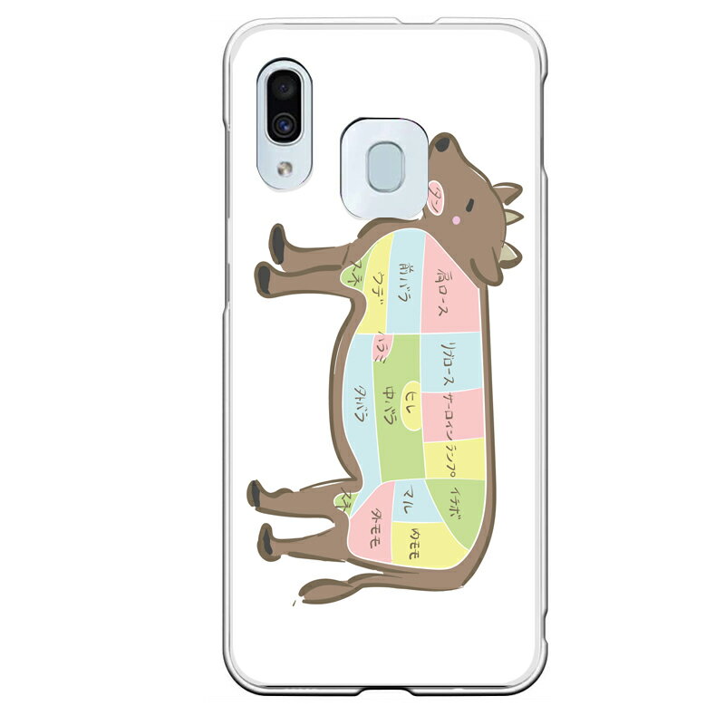 Galaxy A20専用 かわいい おしゃれ 映え おもしろ 牛 ウシ 丑 肉の部位 名称 サーロイン リブロース ランプ ハラミ イチボ タン 食べ物 焼肉 SC-02M SCV46