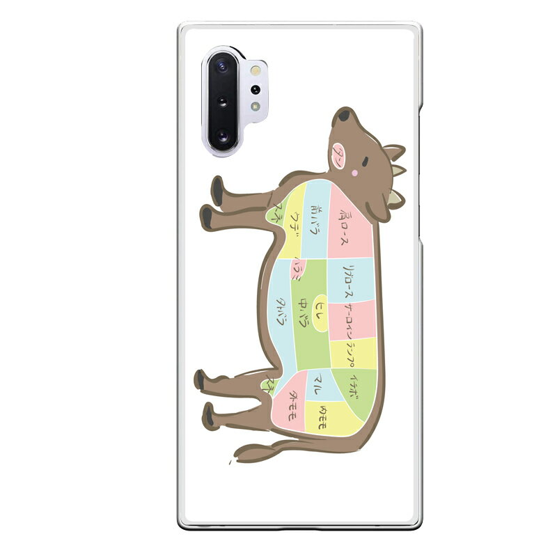 Galaxy Note10+専用 かわいい おしゃれ 映え おもしろ 牛 ウシ 丑 肉の部位 名称 サーロイン リブロース ランプ ハラミ イチボ タン 食べ物 焼肉 SC-01M SCV45