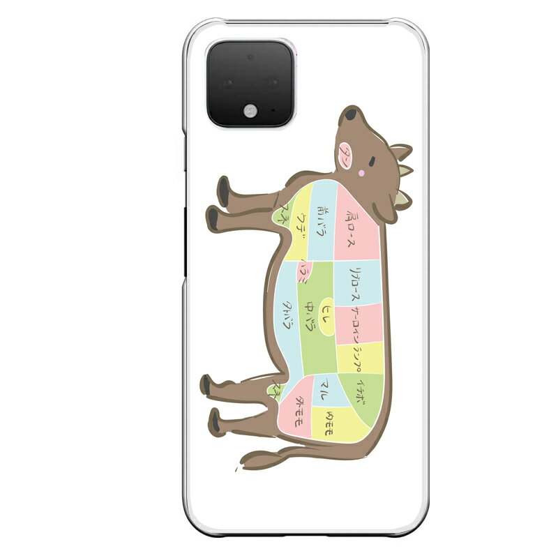 Google Pixel 4専用 かわいい おしゃれ 映え おもしろ 牛 ウシ 丑 肉の部位 名称 サーロイン リブロース ランプ ハラミ イチボ タン 食べ物 焼肉