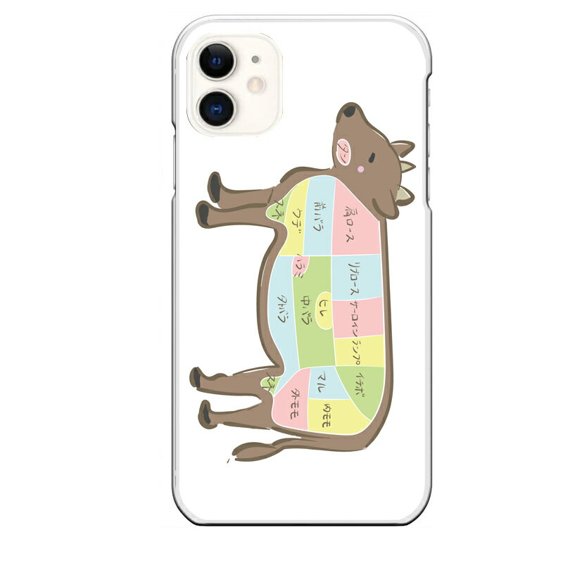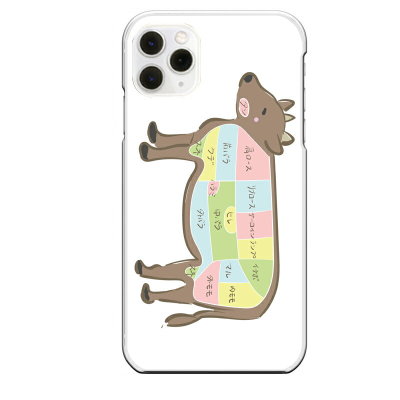 iPhone 11専用 かわいい おしゃれ 映え おもしろ 牛 ウシ 丑 肉の部位 名称 サーロイン リブロース ランプ ハラミ イチボ タン 食べ物 焼肉