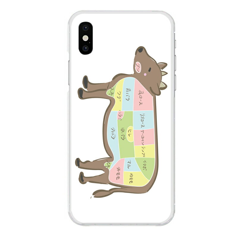 iPhone XS専用 かわいい おしゃれ 映え おもしろ 牛 ウシ 丑 肉の部位 名称 サーロイン リブロース ランプ ハラミ イチボ タン 食べ物 焼肉