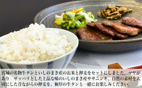 【ふるさと納税】厚切り牛タンと麦飯セット(牛タン750g+米8合+麦800g) 宮城の名物牛タンといしのまき産米をご家庭で♪