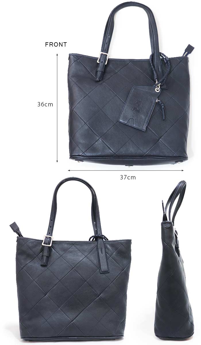 商品名 本革鞄 レザートートバッグ ゼブーレザー ダイヤステッチ トートバッグ 仕様 [メイン収納1]ファスナーポケット×1、フック式ポケット×1、ポケット×1、コードリール×1 [付属品]ファスナーポケット×1、パスケース×2 サイズ 縦幅35cm×横幅37cm×厚み12cmハンドル全長58〜69cm×横幅2cm×厚み8mm ※上記実寸サイズは当店で計測しておりますので、実際の商品と誤差が出る場合が御座います。