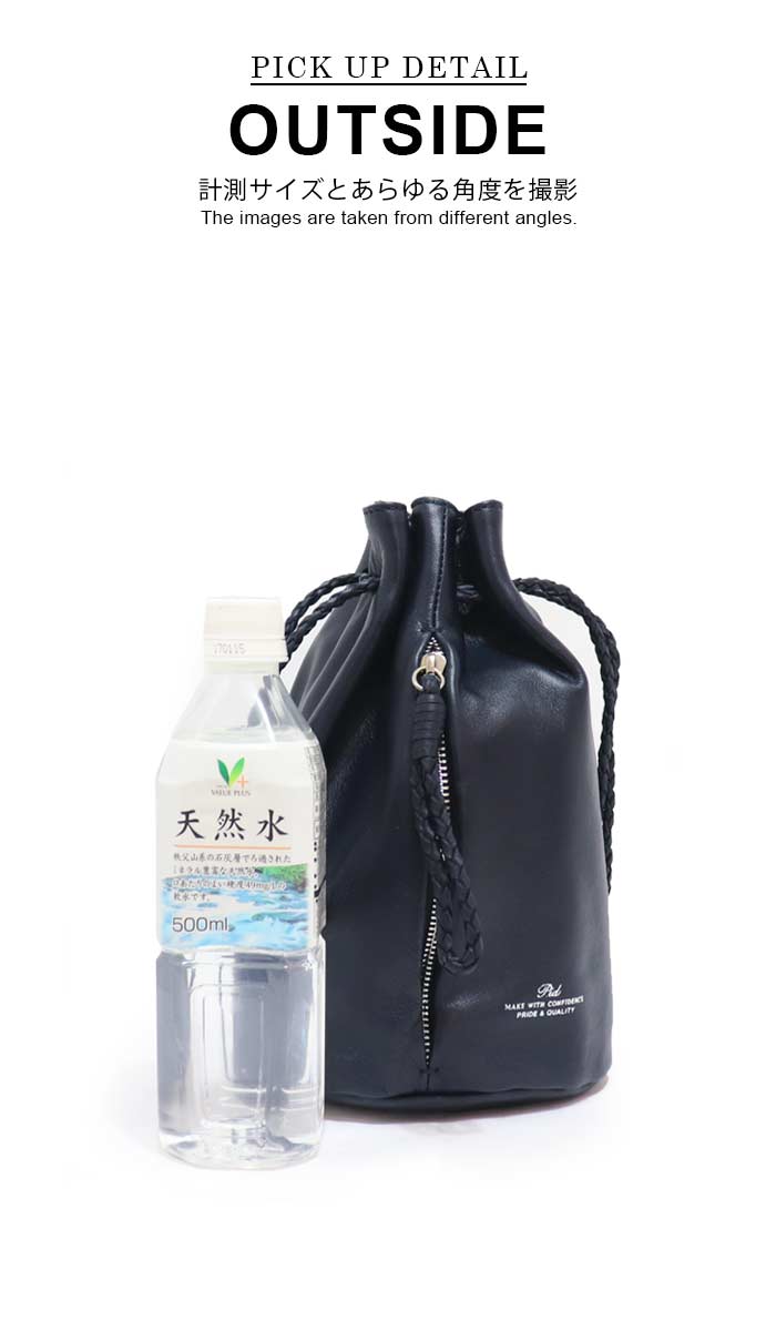 商品名 本革鞄 レザー 巾着型バッグ 巾着ポーチ 仕様 【外側】ファスナーポケット×1※メイン収納とは繋がっておりません。