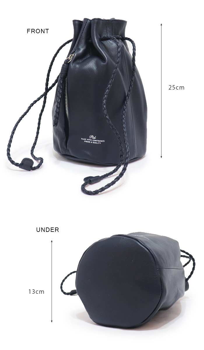 本革鞄 レザー 巾着型バッグ 巾着ポーチ 本体素材には衣料用の牛革ナッパを使用。