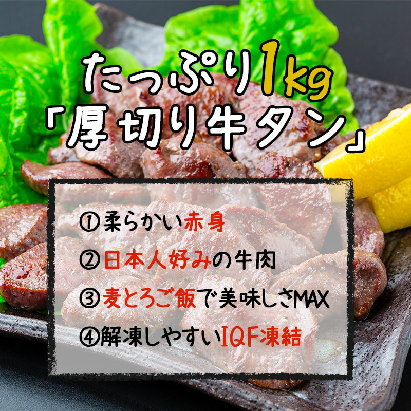 お取り寄せグルメ 牛タン 厚切り 1kg 訳あり 焼肉 バーベキュー 牛たん 塩味 味付き 肉厚 15mm