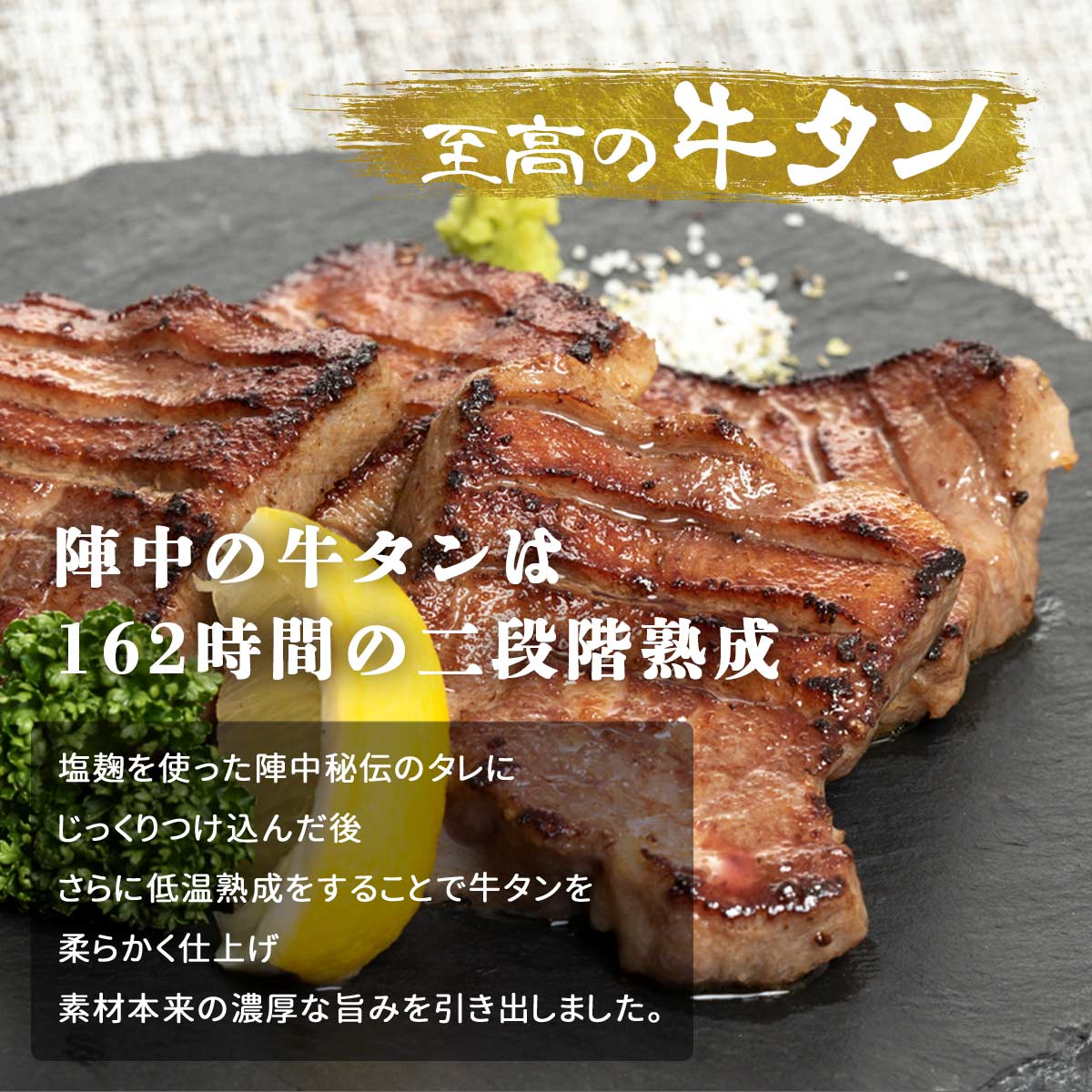 塩麹を使った陣中秘伝のタレにじっくりつけ込んだ後、さらに低温熟成をすることで牛タンを柔らかく仕上げ、素材本来の濃厚な旨みを引き出しました。